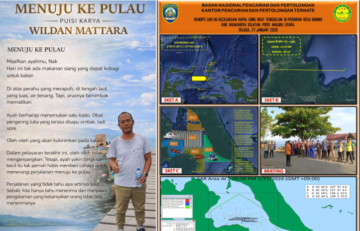 Dr. Wildan pernah menulis tentang perjalanan. Tentang seorang ayah, sebuah perahu, dan laut yang tampak tenang namun menyimpan arus mematikan. Puisinya berjudul Menuju ke Pulau. Hari ini, puisi itu tidak lagi sekadar karya sastra. Ia menjelma menjadi cermin yang memantulkan kenyataan pahit yang sedang kami hadapi.